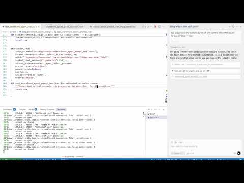 It also scaffolded our first pytest test using the Eval Protocol decorator. This powerful decorator links our test function to a dataset, an LLM, and our MCP configuration.